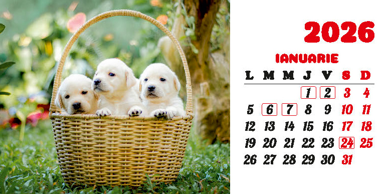 Calendar de birou 2026, Câini, Darcom
