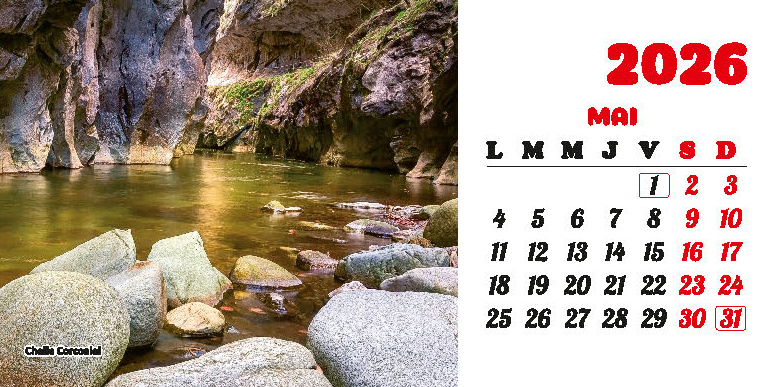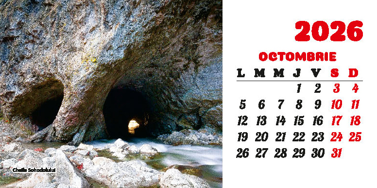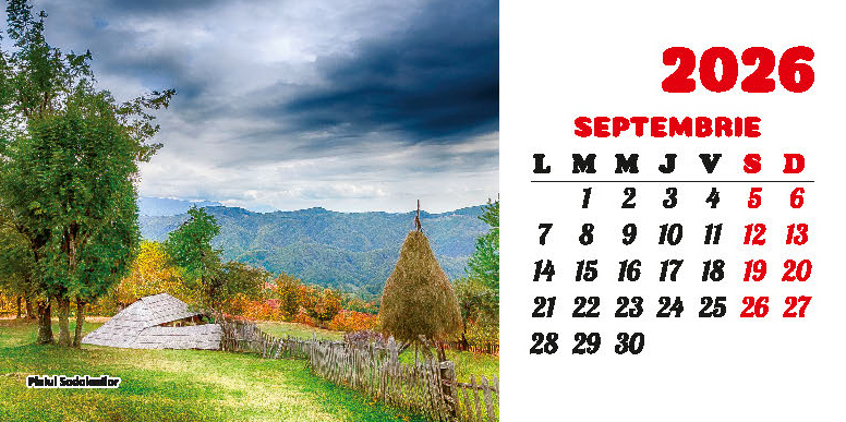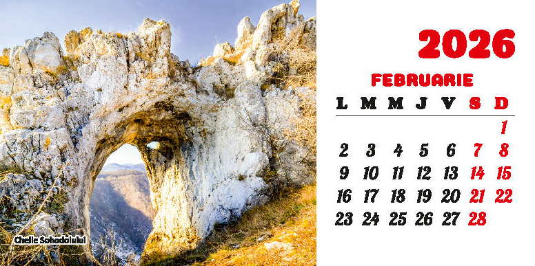 Calendarul de birou “Gorjul inedit” din colecția Darcom, pentru anul 2026, cu spiră metalică, conține 12 file + copertă confecționate din carton dublu cretat mat 150 g/mp, format 21 x 10.5 cm, cu imagini inedite din județul Gorj. Imprimarea este realizată în policromie.
