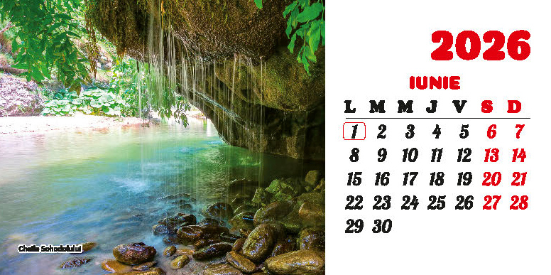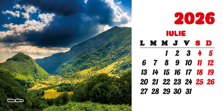 Calendarul de birou “Gorjul inedit” din colecția Darcom, pentru anul 2026, cu spiră metalică, conține 12 file + copertă confecționate din carton dublu cretat mat 150 g/mp, format 21 x 10.5 cm, ilustrând diferite imagini inedite din județul Gorj. Imprimarea este realizată în policromie.