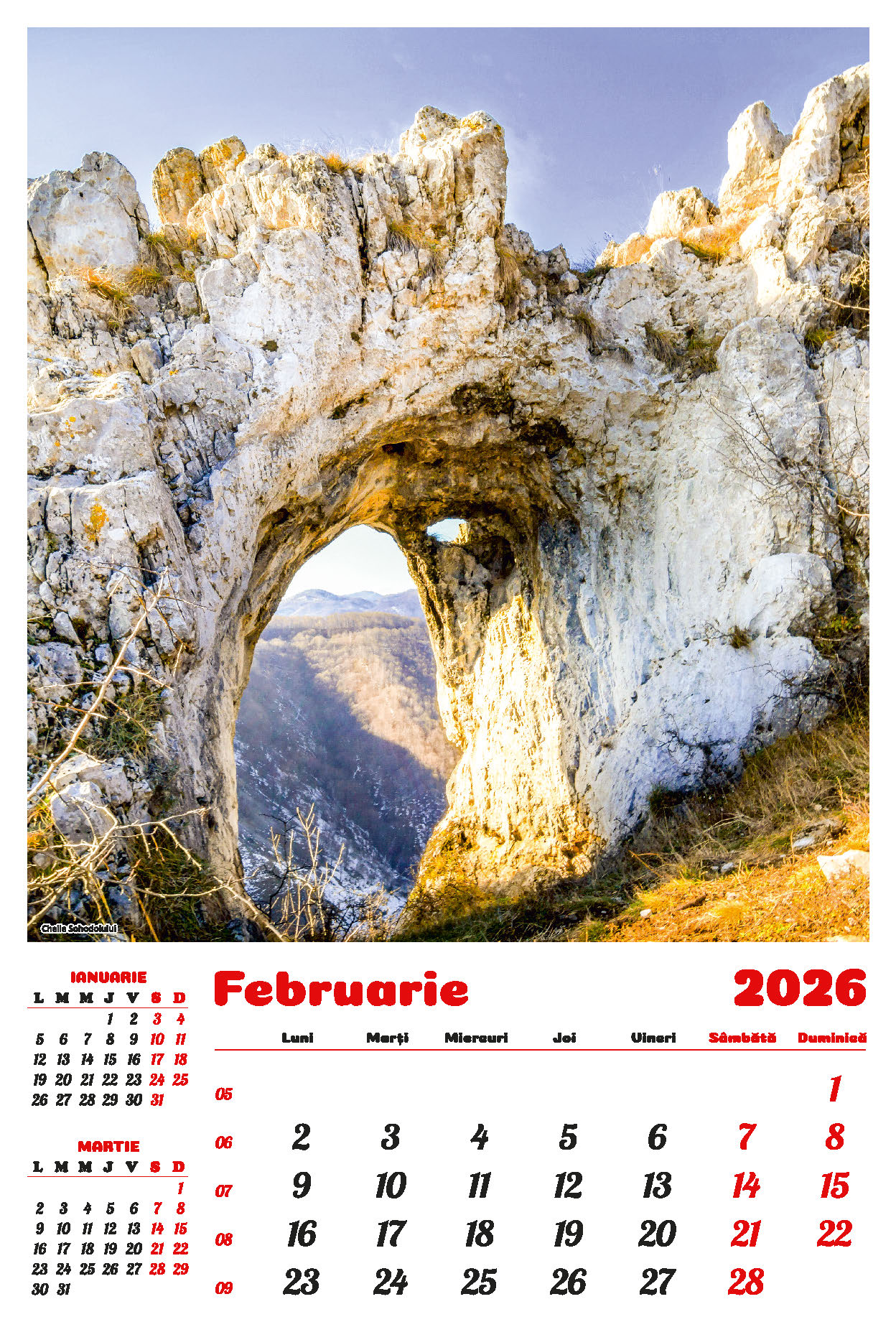 Calendarul de perete “Gorjul inedit” din colecția Darcom, pentru anul 2026, este confecționat din carton dublu cretat mat 150 g/mp, format 33 x 49 cm. Imprimarea este realizată în policromie.