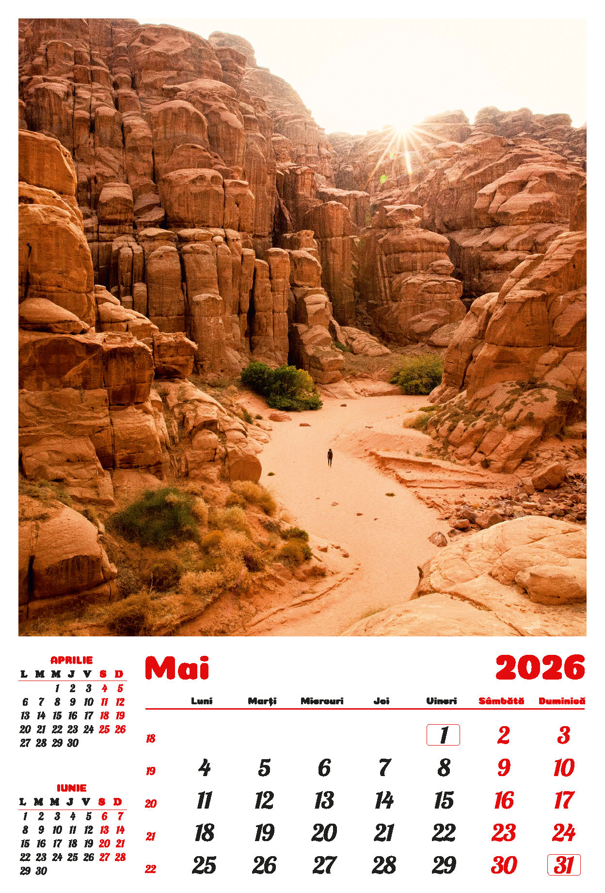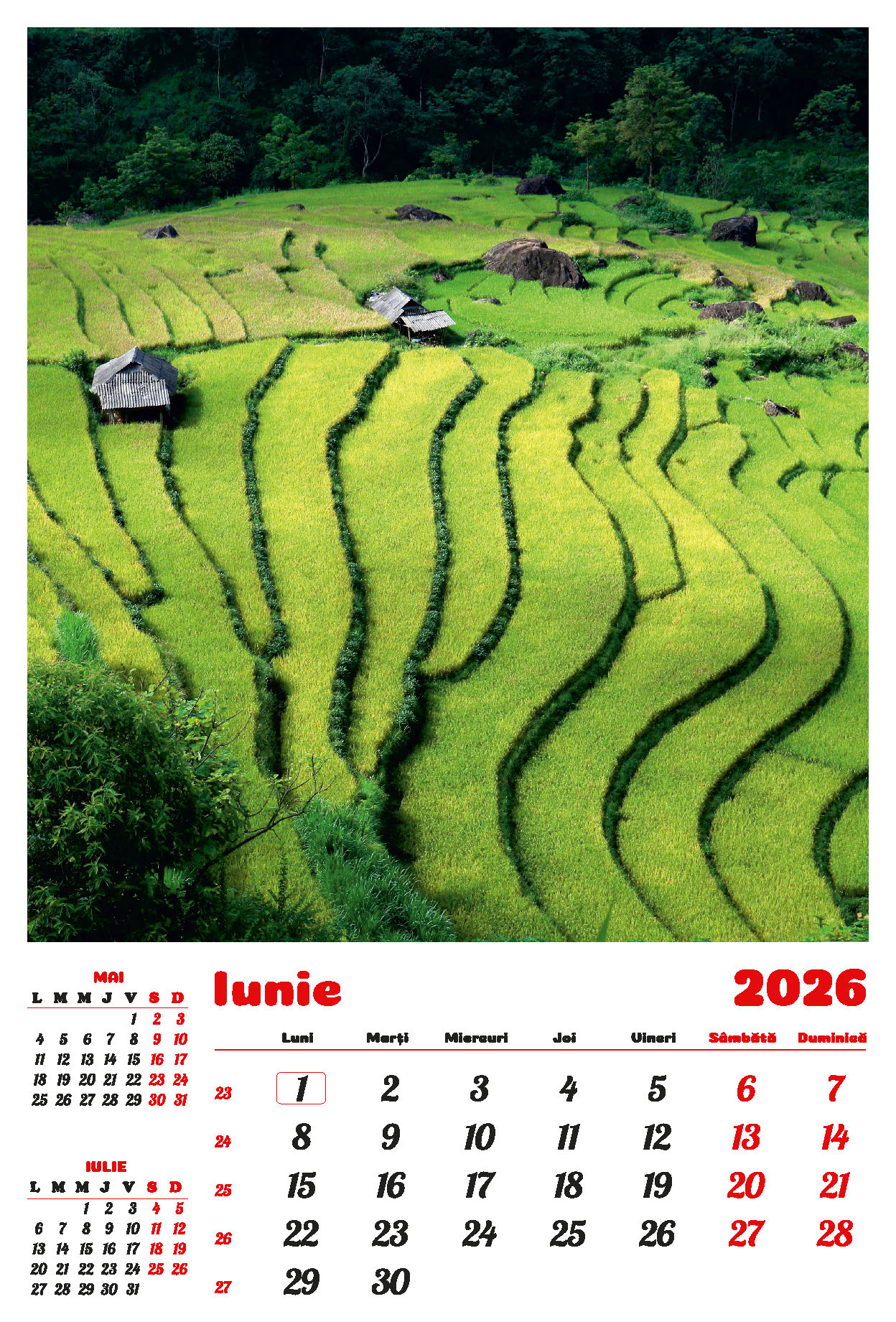 Calendarul de perete “Peisaje” din colecția Darcom, pentru anul 2026, este confecționat din carton dublu cretat mat 150 g/mp, format 33 x 49 cm. Imprimarea este realizată în policromie.