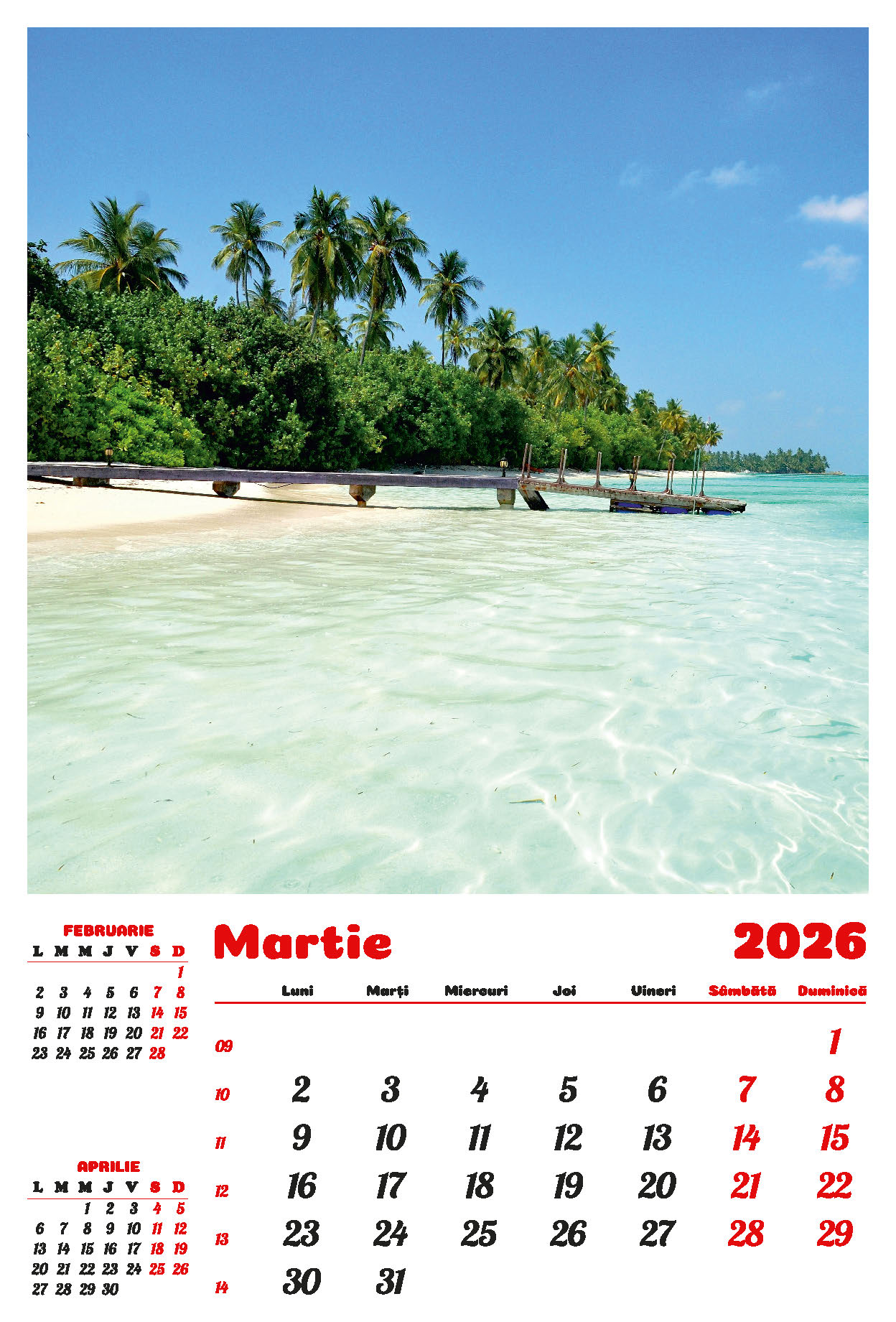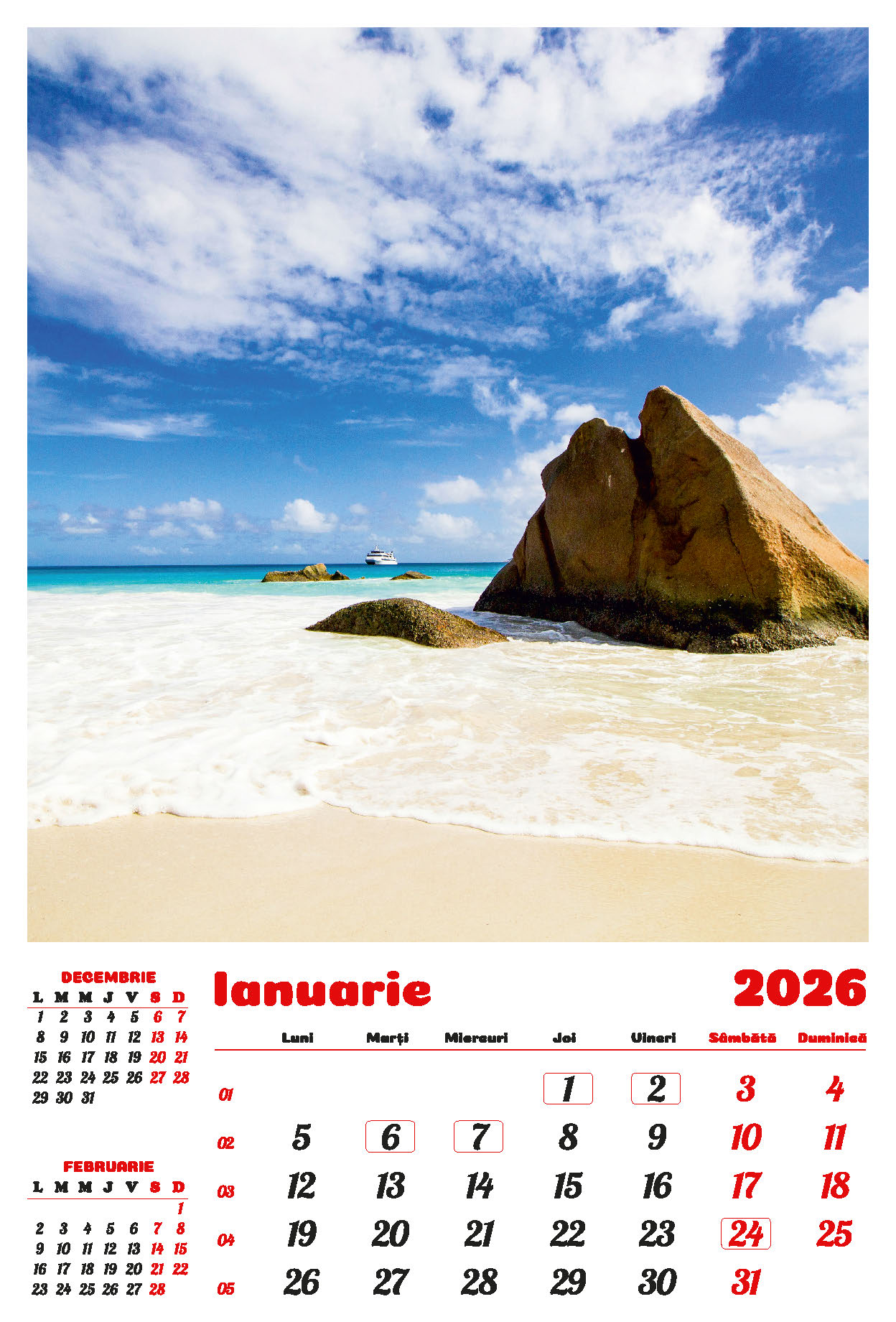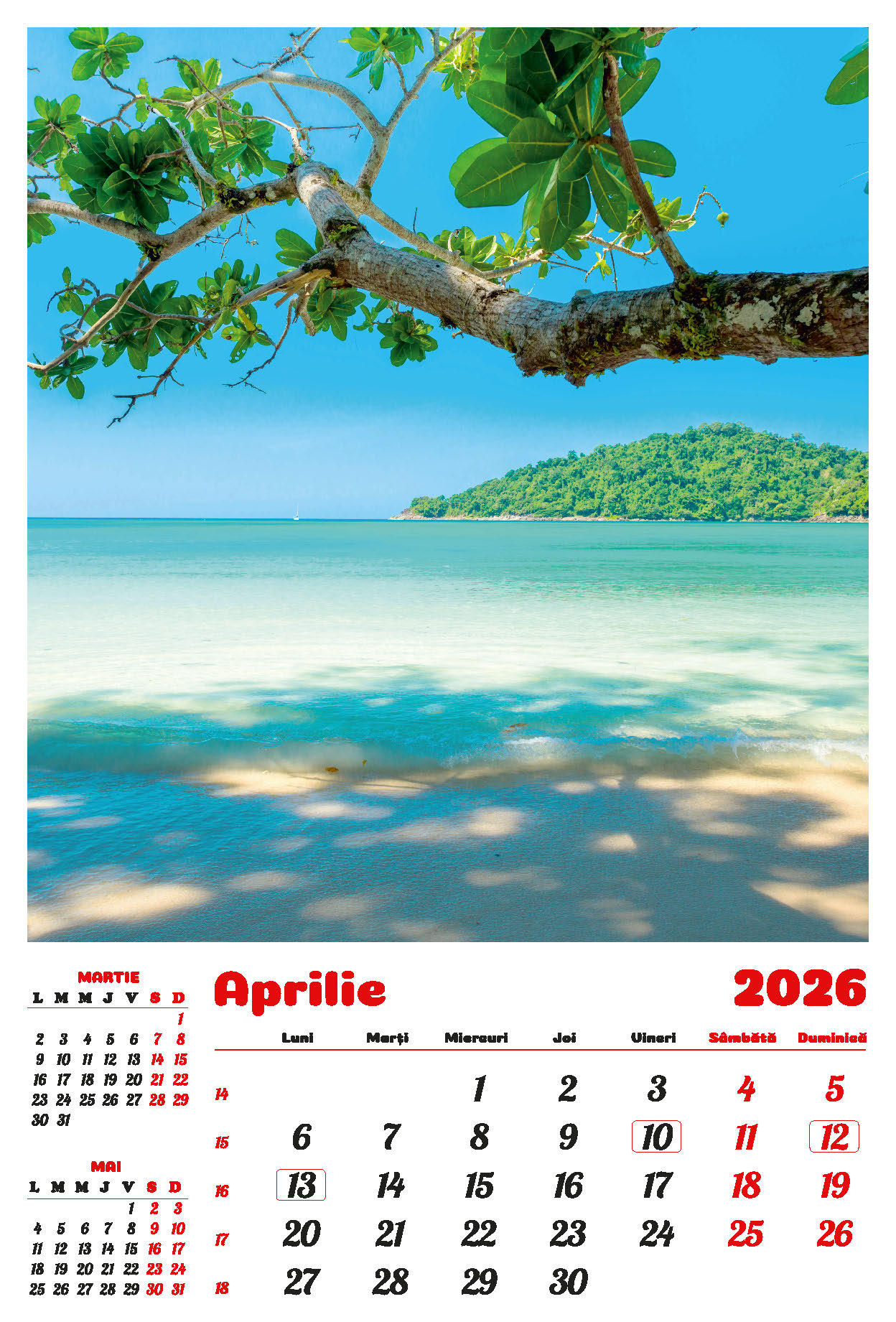 Calendarul de perete pentru anul 2026 ”Plaje” poate fi o opțiune excelentă pentru planificarea și organizarea programului zilnic, săptămânal, lunar și anual. Descoperă aici toate modelele din colecția de calendare Darcom pe care le comercializează compania SC Darcom SRL în magazinul fizic și în magazinul online darcomshop.ro.